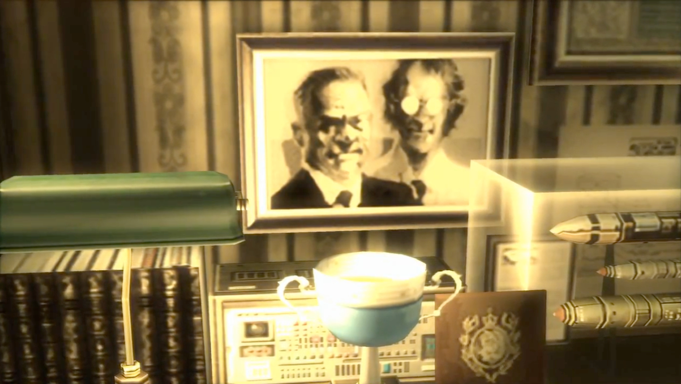 Mandelin breaks down the differences at Legends of Localization. It’s still Kojima nonsense, but it makes a little more Kojima-sense in the Japanese version as Granin explains the strained notion that the technology he is working on, “will be a kind of ‘gear’ that links foot soldiers and weaponry,” whereas in the English localization he says, “this technology will be the missing link between infantry and artillery,” before out of nowhere offering, “A kind of metal gear, if you will.”