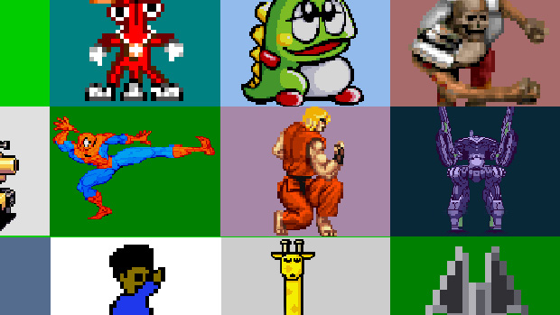 For a class project, I had to find every letter of the alphabet within some sort of theme with out tampering with the images. Some students used household items, others used tree branches, and I, naturally, chose videogame sprites.