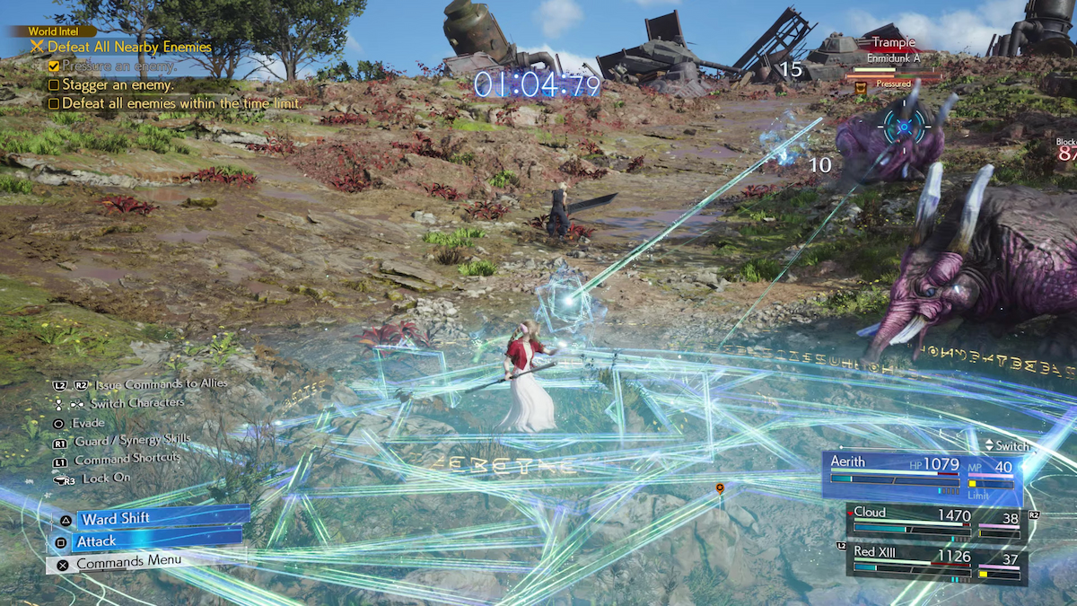 The weird thing about my experience is that I saw a game that I really wanted to play here, but just didn’t have the opportunity to. Even during the battle I described above, I noticed that those enemies pushing my party away had a Lightning weakness. I immediately thought “If I could just equip Aerith with Lightning Materia, I bet I could complete this objective easily.” Alas, Aerith didn’t have any Lightning magic, and I couldn’t do that menu management myself.