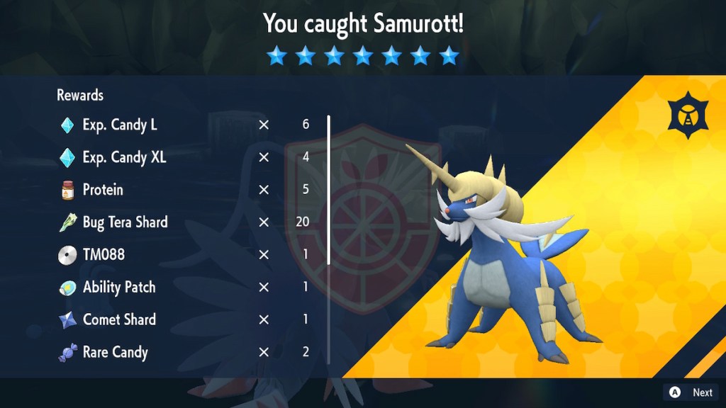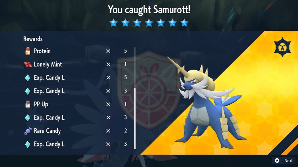 It’s a good day for Generation 5 fans, as Samurott makes its debut in Pokemon Scarlet & Violet. Anyone who defeats this Water-Type starter Pokemon in its corresponding 7-Star Tera Raid battle will be able to catch it, so naturally, we did just that. Check out all its stats, abilities, and moves below.