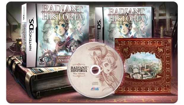 I may have played, beaten, and reviewed Atlus’ upcoming DS RPG Radiant Historia, but I had no idea what the box art, packaging and included music CD would look like. When I get preview code, it’s on an ulgy grey, bulky re-writable ROM that protrudes out of the back of my DS. Seeing what fans picked for in an Atlus poll for the CD art makes up for the weeks that I suffered with that ugliness.