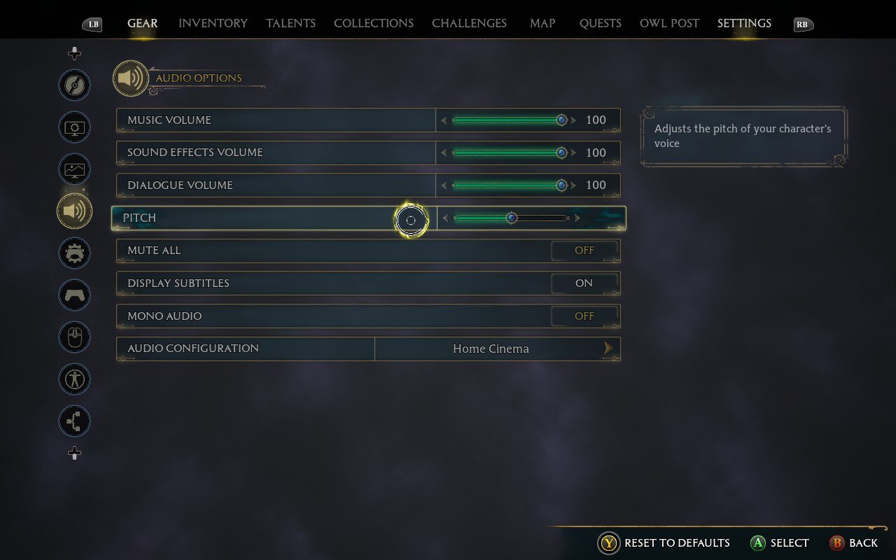 Fixing the audio bug for the protagonist’s voice in Hogwarts Legacy requires you to revert it back to normal, which you can do without having to create a new character. What you’ll want to do is head into the settings for the game and then to the audio section. Under there, you’ll find the voice pitch slider.