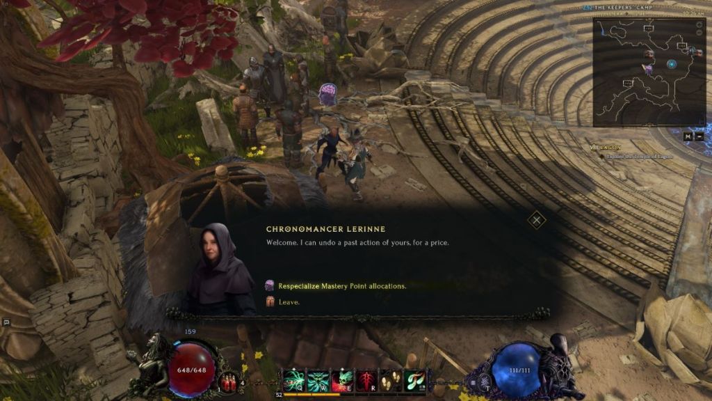 You can reset your passives any time you’re in town by visiting the Chronomancer. Head to the map marker that looks like a brain in a skull. For a small amount of gold, the Chronomancer will let you respec passives point by point. When you pay to remove a passive skill point, you’ll be able to immediately place it somewhere else on the skill tree.