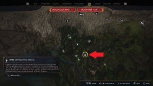 You’ll find the Dark Arts battle arena north of Hogwarts in the Forbidden Forest, in the countryside near the top end of the world map. The exact location can be found in the gallery above (we’ve even provided a zoomed-out view so you can see where it is in relation to several big landmarks).