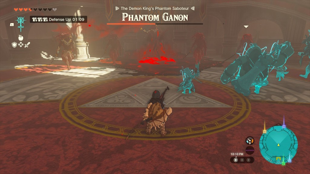 Phantom Ganon clones have a few attacks at their disposal, mostly of the melee variety. There’s a spin attack, a rushdown attack, and a teleport attack (where they turn into smoke, then reappear near you and strike). All of these abilities can be dodged, and most of them can be blocked directly.