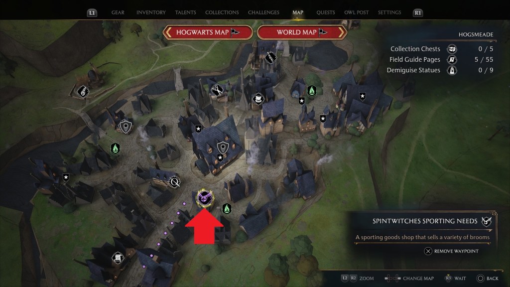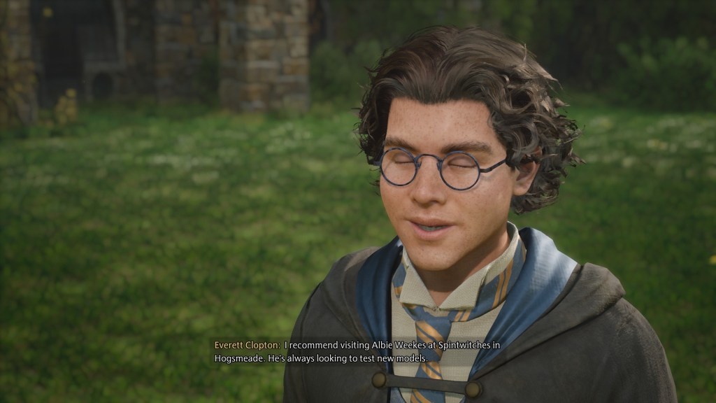 Fellow student Everett Clopton tells you where to go next, but it’s pretty easy to miss. Once the quest ends and you hand in your broom, you’ll want to go to Spintwitches Sporting Needs in Hogsmeade (exact location found in the gallery above) to buy a mount of your own (conveniently, it has a Floo Flame fast travel spot right next to it).
