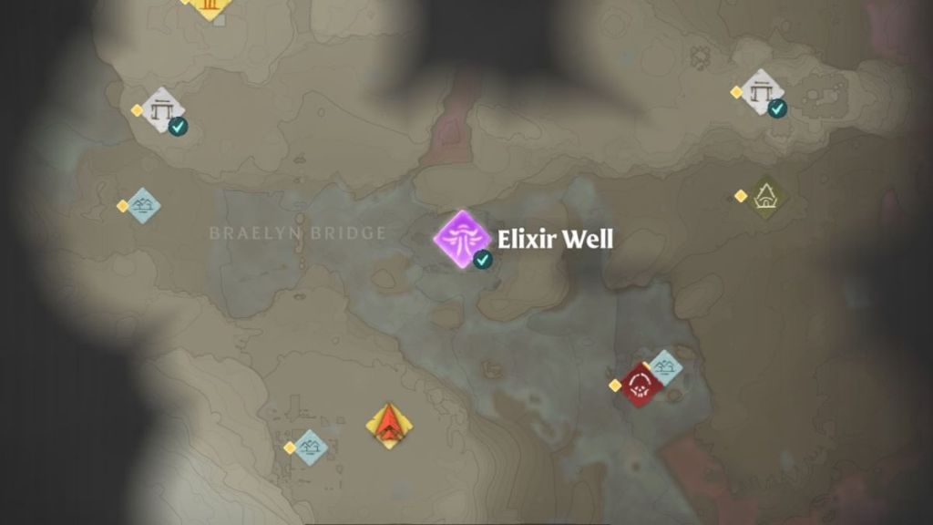 To fully clear a Well you need to chop down the Shroud Root at its core with some kind of axe. You’ll get your first opportunity to do this around the time you build your first glider and grappling hook. Now that you’ve got all the basic gear you need to easily traverse the world, you should be able to reach the Elixir Well just north of the plains. The Well west of the Braelyn Bridge, but you can shorten your travel time by using your newly acquired glider to fly through some of the Shrouded that surrounds it.