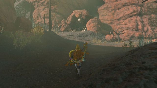 A stealthy approach is highly recommended here. There are plenty of weapons and items you can pick up, but not much in the way of healing. Around the cave, you can find some decayed weapons, and as you take out enemies, you’ll want to quickly fuse horns on for extra damage.