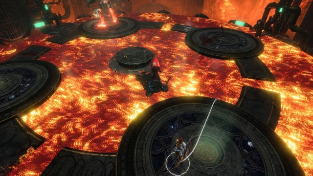 Once you’re all set with mould and material in hand, set up your party for a big fight. Once you start the forge, the hammer will strike and lower the platform. From here, you’ll need to unleash the lava using the newly arrived valve, which will kick off a fight with Grym, the Eternal Protector of the Forge.