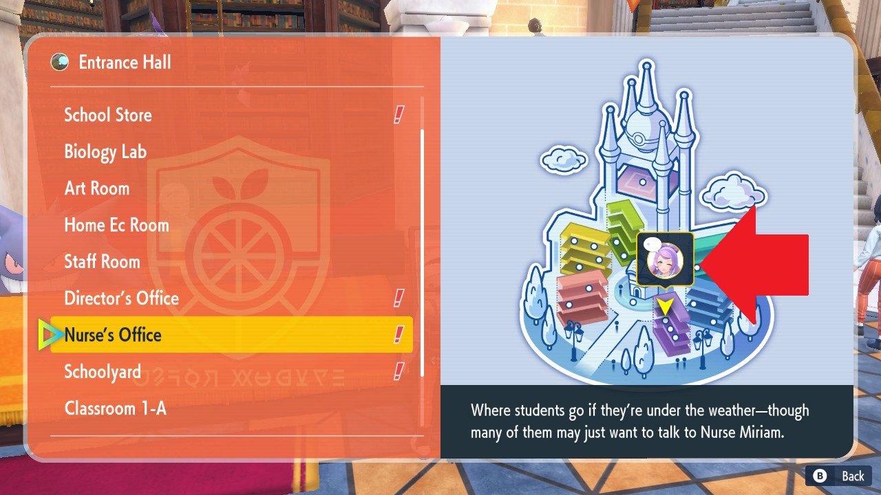 All you need to do is search for her icon on the academy fast travel map, select it, zone in, and talk to her. Nurse Miriam has purple hair, and you can find an icon of her character model in the gallery above. Generally, she will be found in the Nurse’s Office. There’s no need to worry about friendship bonds via any other questline or task: instead just having conversations with her will get the job done.