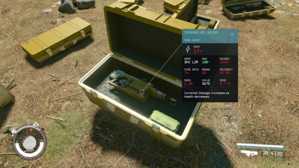 You can pick up all the weapons and ammo on your own, but there’s an easier method. After you load your game from the previous step, go to the outpost and delete it. To do that, walk up to the outpost until you can interact with it. Hold the ‘Rename’ option button or key down until it asks if you want to remove the outpost. Hit ‘Yes’, and the outpost along with all the weapon cases will be deleted. All their contents will get sent into your ship inventory. If your ship is full, they’ll appear in your personal inventory.
