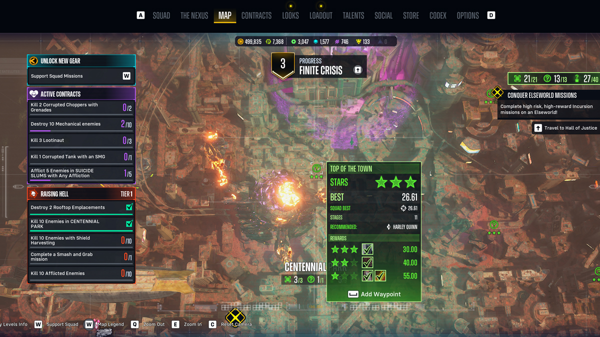Riddler has 13 AR Challenges spread throughout Metropolis. The goal is simple enough: clear each of the holographic green rings as quickly as you can. Clearing certain times will award you with various cosmetics for each character. Now, while Suicide Squad: Kill the Justice League recommends specific characters for each challenge, Deadshot is the key to beating them with ease.