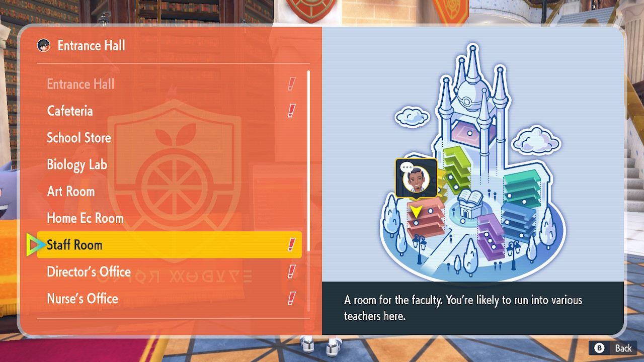 To do that, go up to any location-select monitor in the school (it’s to the right of the entrance hall main desk), and keep scrolling until you see Professor Salvatore’s icon. Select it, and find him in that room/location, then speak to him. Repeat the process several times and he’ll give you a Galardian Meowth.