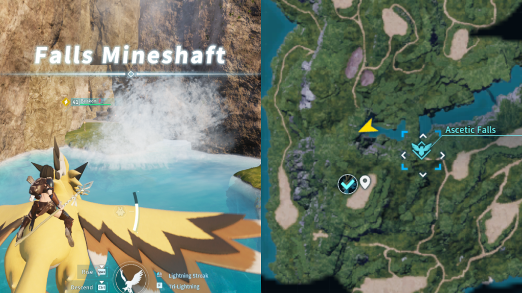 Falls Mineshaft can be found at -249, 434. Inside this Mineshaft, you’ll find a level 25 Alpha Fenglope. Arguably the hardest to find of all the Mineshafts, this one is hidden behind a waterfall, as the name suggests.