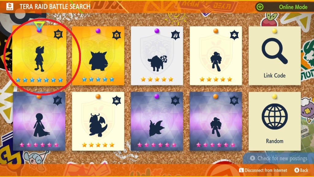 Eventually you’ll run out of symbols on your map to host your own raids, so you’ll want to spam the Poke Portal search. Go to the main menu, then connect to the internet. Select Poke Portal, then select Tera Raid Battle, then look for the Cinderace symbol (there’s one for reference in the gallery above).