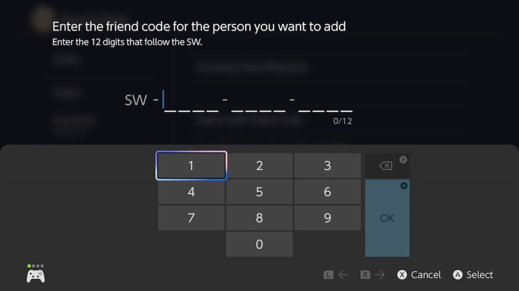 The image above is the screen you will see when you add a friend via their Friend Code. Enter in the 12 digits given to you by your friend to send them a request. To accept another’s request, select Incoming Friend Requests from the Add Friend screen.