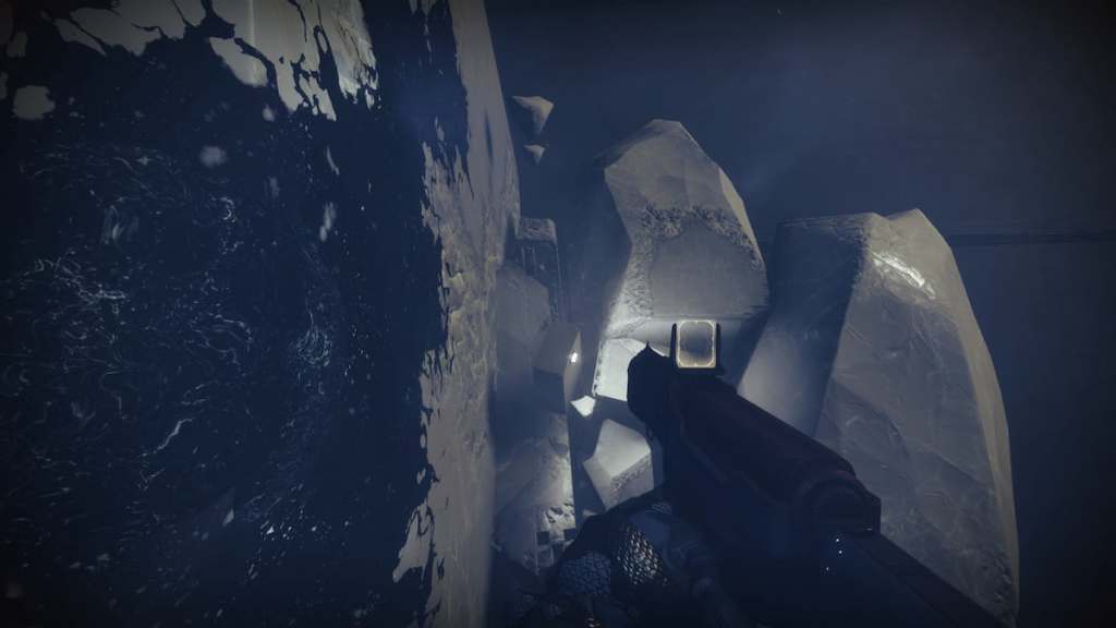 Just after the fifth oddity, when you reach the next open area with dissolving platforms, take the Hobgoblins sniping you, then keep going until you reach a floating glacier with another Hobgoblin shooting at you. Three small ledges will be below you and to your left, so drop down and destroy the Blight with a ricochet by aiming at the X on the nearby wall. You can also hit this from the glacier in front of you, if you drop down below where the Phalanx spawns.