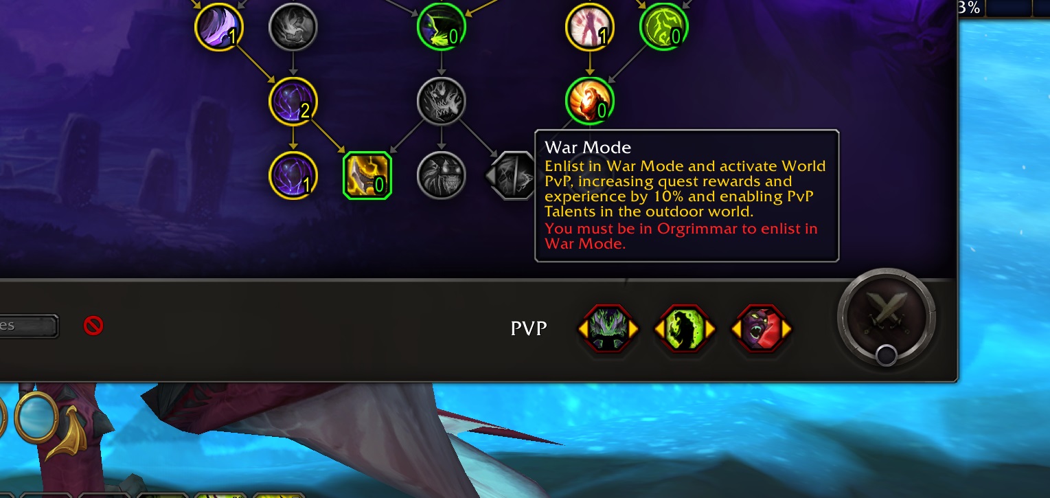 Press “N” to open the talent screen, then look for the War Mode crossed swords icon in the lower right. Activate that to start farming Bloody Tokens (you need to be in your faction’s capital city to do this).