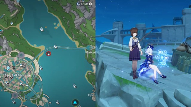 First, talk to Delaroche, Fontaine’s representative for the Fishing Association. She can be found on some ruins jutting out of the water to the east of the Court of Fontaine.