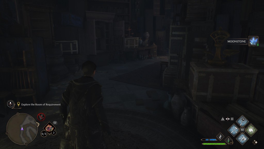 On the way into the Room of Requirement during the questline, you’ll be introduced to the simplest way to gather up Moonstone: use Evanesco (which you’ll get for the quest) to “vanish” items with a nice Moonstone refund.