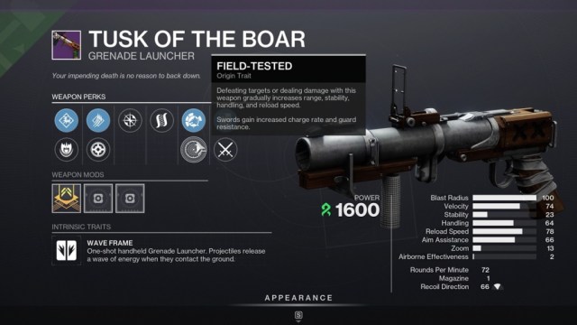 Even though Destiny 2 is poised to receive a substantial shake-up of the weapon meta, some Perk and weapon-type combinations are simply too good to pass up on. The Tusk of the Boar grenade launcher, for example, has several potential god rolls to farm for, and they’re essentially must-haves.