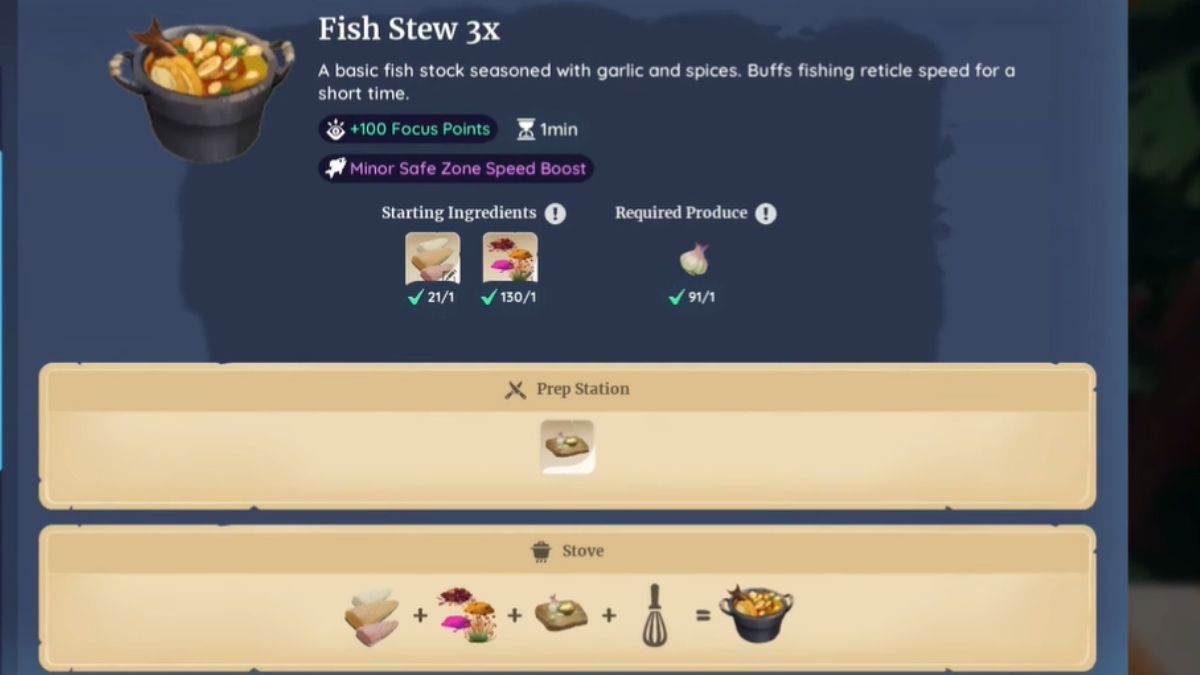 These ingredients, when combined on your virtual stove, will transform into a dish that not only satiates your hunger but also provides a minor fishing safe zone speed boost. The effects of the Fish Stew last for a duration of eight minutes, giving you ample time to make the most of your newfound fishing prowess.