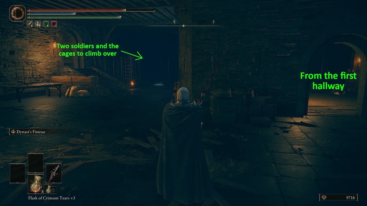 - Dispatch the soldiers, climb on top of the cages, and follow the path. You’ll see the chest containing the Flamedrake Talisman +3 at the end of the path.