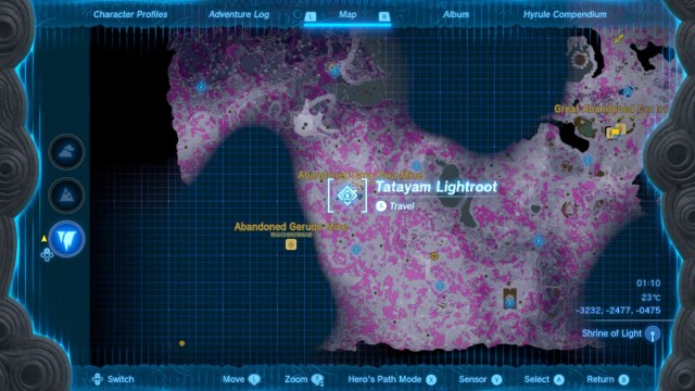 To get the mask, head to Tatayam Lightroot. It can be accessed by leaping into the Depths via the East Gerudo Chasm, then heading west until you reach Mihcihc Lightroot. From here, head north until Tatayam Light is encountered. It is directly under the Mayatat shrine and the coordinates are: -3291, -2511, -0475.