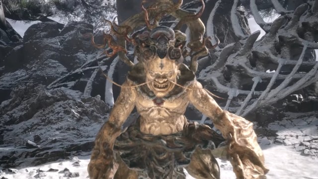 You’ll come across some massive snake skeletons in the snow. Keep going and you’ll find the main body, where the skull of the snake skeleton is. This is where the Apramana Bat will appear and attack you on sight.