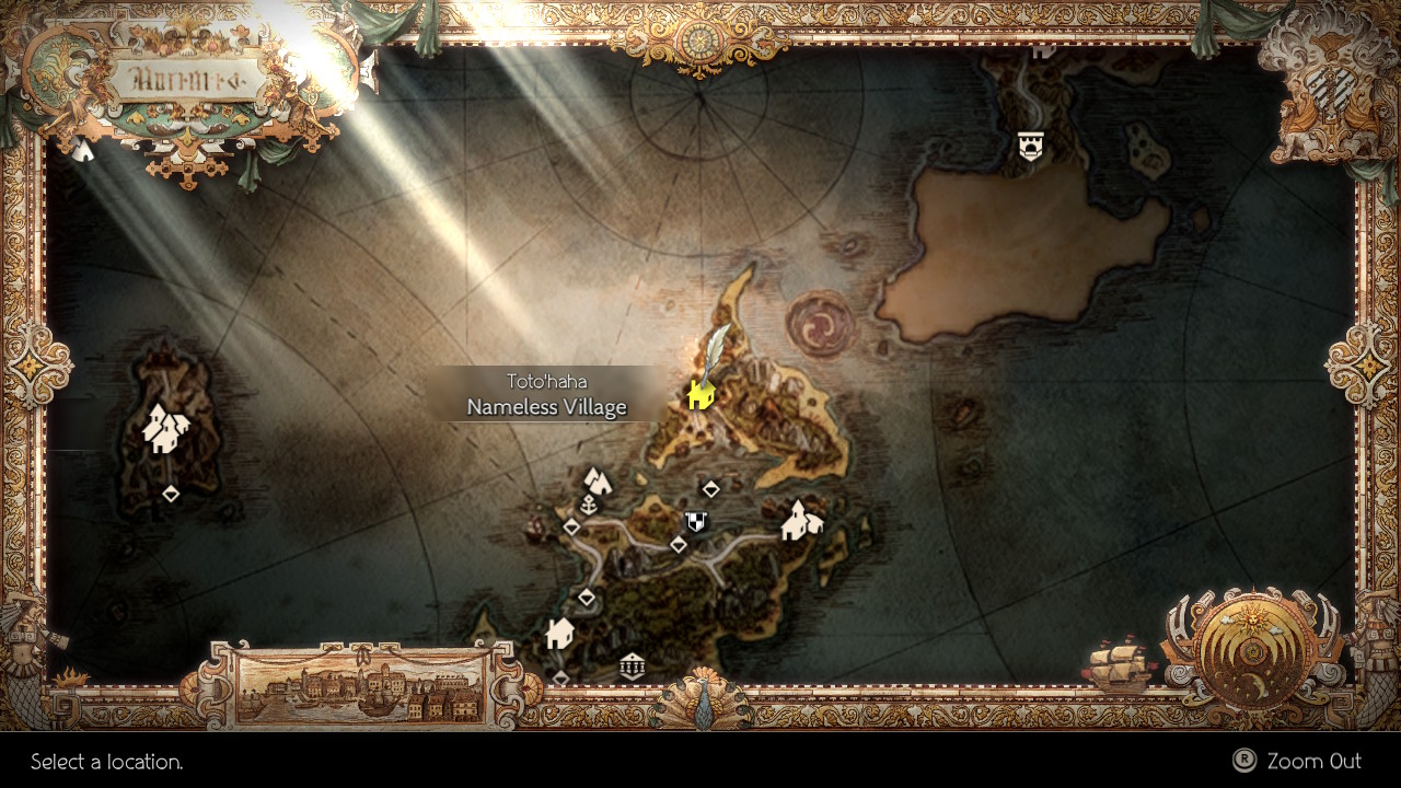 The Nameless Village is in the Toto’haha region of the world; the same place where Ochette begins her tale. It is found on the northern island that is separate from the main island where the Beasting Village is.