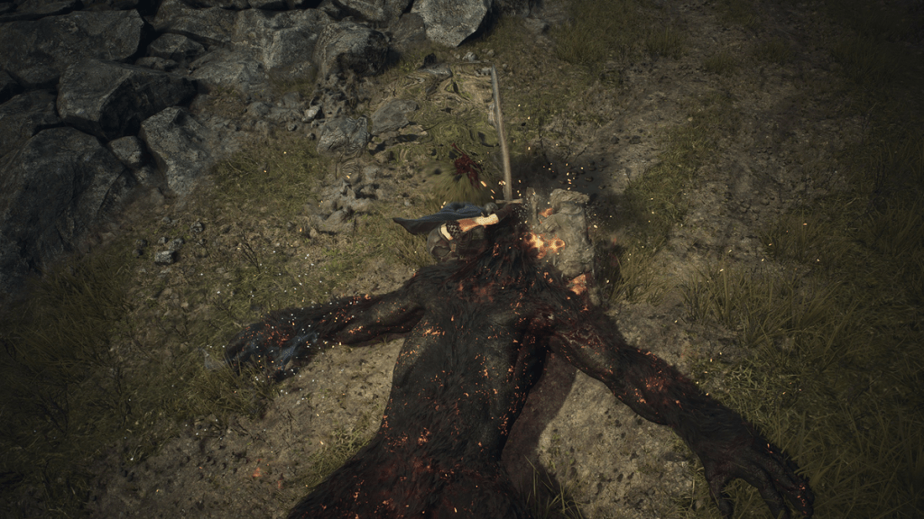 Once you’ve inflicted enough damage onto the Ogre causing him to stagger and fall, you want to start blasting damage right to his face. You can actually do so me insane damage in the brief time he is laying on the ground, so be sure to make use of it.