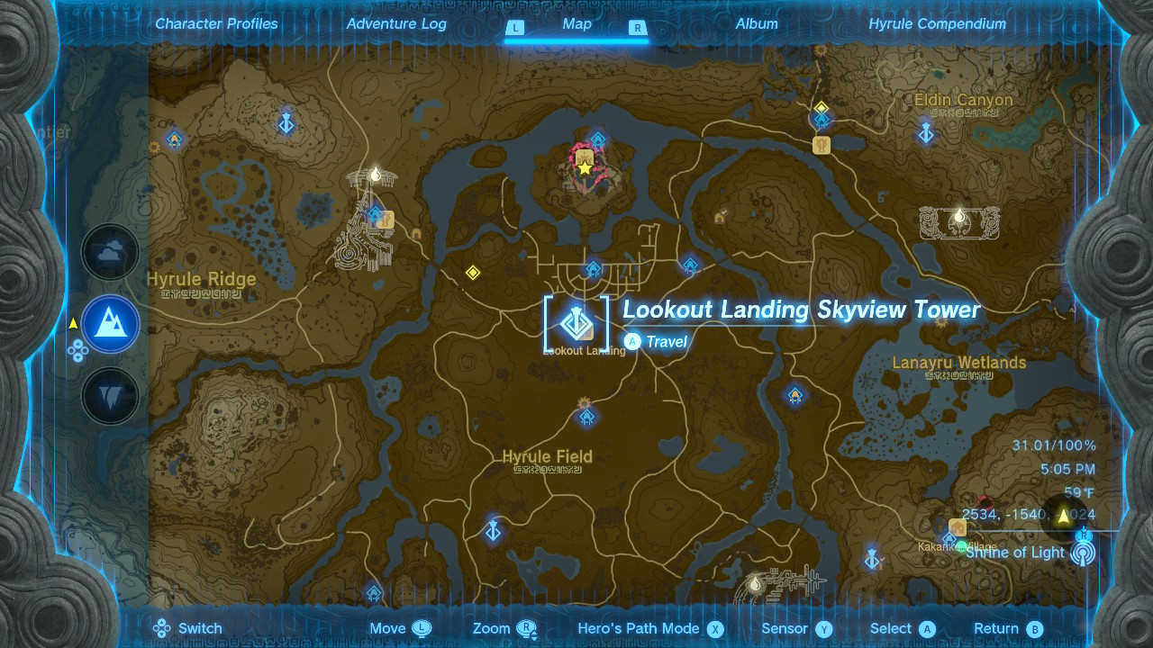 You’ll come across Lookout Landing very early in the game, directly after the tutorial. It’s located in Central Hyrule, directly below Hyrule Castle.