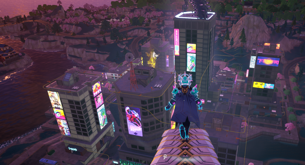 You’ll want to immediately drop into Mega City (exact location above), which has plentiful healing/shield items and rails in a single convenient location.