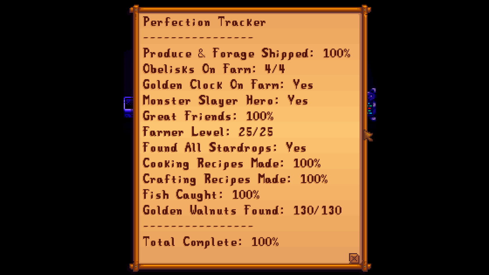 | Produce & Forage Shipped | Ship one of every item (155 in total) in the ‘Items Shipped (Farm and Forage)’ tab in the collections menu | 15% |