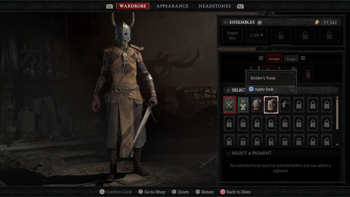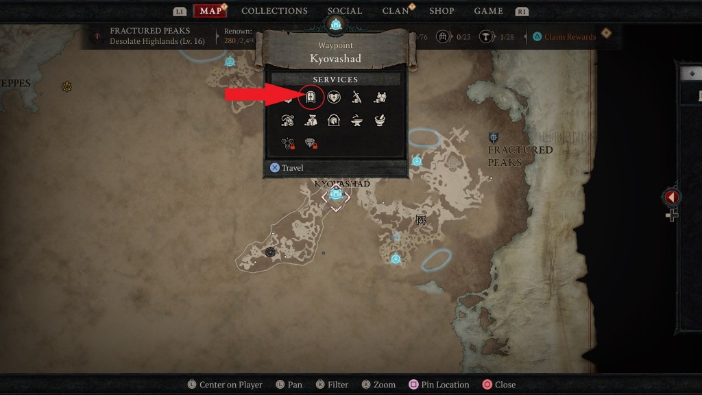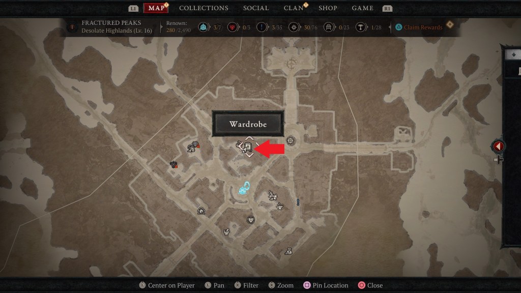 In Diablo 4, you’ll access the transmog mechanic through the wardrobe. It looks like a white chest of drawers icon on your map, and can typically be found at big cities/hubs (the first of which is Kyovashad). All you need to do is walk over to the wardrobe and interact with it to swap your look around.