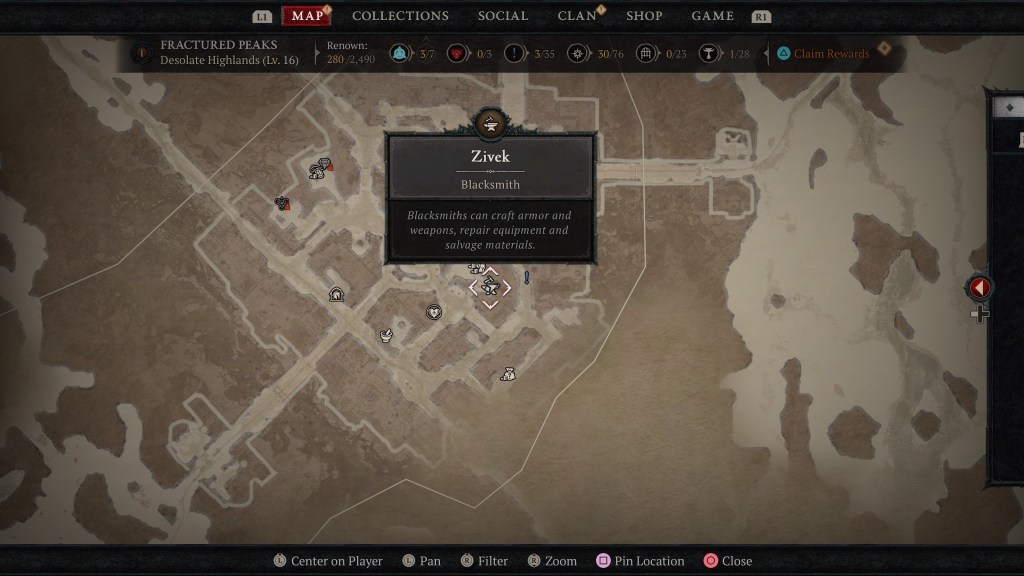 To unlock more transmog options, you need to go through the blacksmith vendors peppered throughout the game world. Head to the blacksmith (icon noted above) and speak to them to salvage gear.