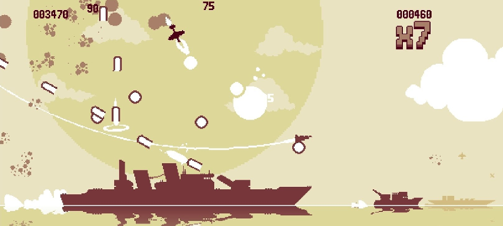 But I quickly got into the rhythm of rolling my thumb across the top half of the d-pad and the fluidity of Luftrausers is wonderful. It’s not that it’s imprecise, but as if everything operated on sin waves rather than Super Crate Box jumps on linear platforms. Thank the finely tuned physics and gravity for its satisfying chaotic choreography.