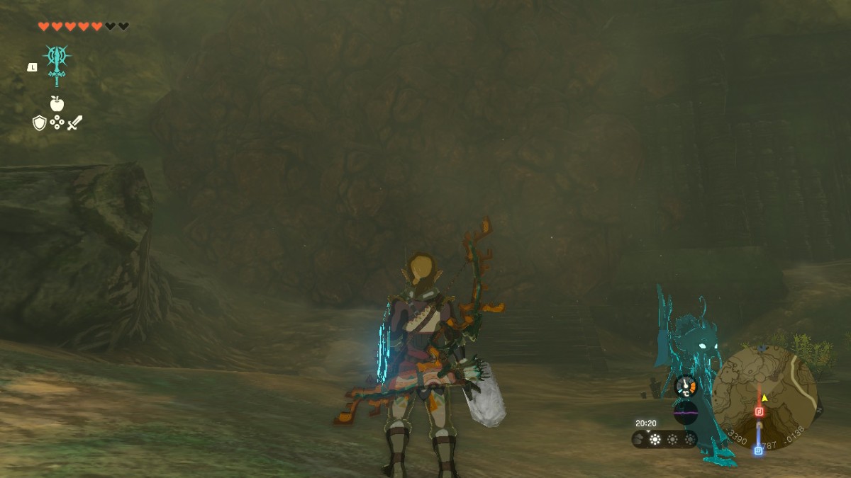 Now for the tricky part. You’ll need to navigate your way through the cave, smashing breakable boulder walls as you go. There are Bomb Flowers to explode the walls and rocks to fuse into weapons littered throughout the cave.