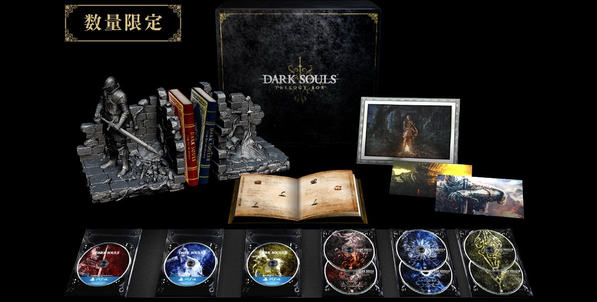 Bandai Namco is putting together a Dark Souls Trilogy Box Set for PlayStation 4 featuring the newly-announced Dark Souls Remastered plus Dark Souls II: Scholar of the First Sin, Dark Souls III: The Fire Fades Edition, and all three game soundtracks (with background music) on CD.