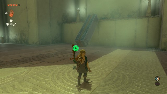 However, don’t go leaving just yet. Take one of the pieces that you used to conduct the electricity, detach it and take it to the opposite side of the room as the exit. There’s a chest on the platform above that Link can’t reach on his own. Place the piece against the wall to form a ramp that Link can walk up. Check the screenshot above for the exact placement. In the chest is an impressive Zonaite Bow that will be useful for a majority of players.