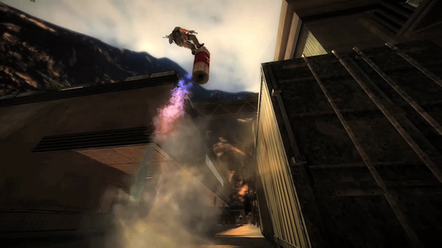 What, you don’t believe me? Watch the newest trailer for Avalanche Studios’ Just Cause 2 above. Like last month’s multi-path trailer, this video shows off the wide variety of havoc-wreaking tools and techniques at your disposal. One particularly creative use of an object is attaching yourself to a gas canister, and then shooting it so it soars into the air — taking you with it.