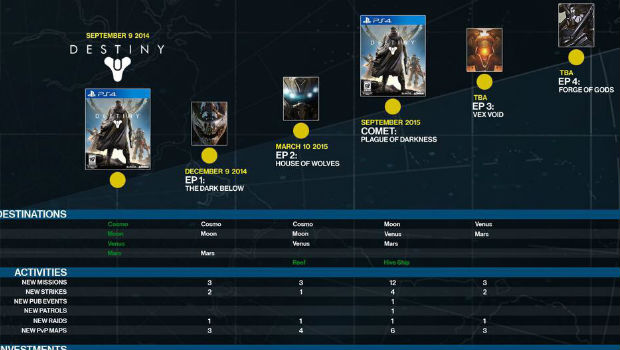 A new leak has been revealed that may shed some light on what’s in store for Destiny in 2015. So far we have the Dark Below expansion that came out in December and House of Wolves coming in March, but that’s all we know. The leak shows that a “massive” expansion might be coming in September 2015 called “Comet: Plague of Darkness.” It’s allegedly going to be marketed on a disc because of how large it is — three new subclasses are rumored.