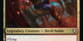 Corey Bowen, leader designer for Magic and on the Battle for Baldur’s Gate Commander set, had the theme of heroic adventures and teamwork in mind when their team crafted the set. The gist was to lean into the social aspect of Commander as well as some of the larger-than-life elements of the universes they’re drawing from. You can really see that in some of the cards below, many of which are legendary and are pulled directly from D&D classes, like a halfling knight, devil noble, and a human wizard. Lightning bolt and fireball were something the team “had to include,” because of the flavor involved, as two of the most recognizable cards in the game’s history.