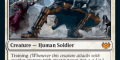 Training is new, too (whenever this creature attacks with another creature with greater power, put a +1/+1 counter on this creature. Like many mechanics, I suspect this one could lead to a few powerful meta combos with super cheap trainees. Cleave lets you cast a spell for its cleave cost: if you do, remove the words in square brackets, such as search your library for a [basic land] card, [reveal it,] put it in your hand, then shuffle. So in other words, it can be any card, and it’s not revealed. That card, Dig Up, is one green mana by the way, and scales up just like kickers always have with that cleave effect.