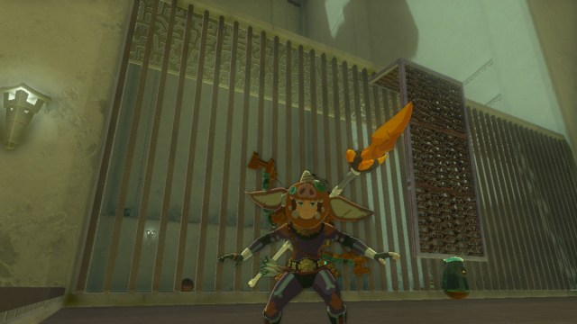 After the sphere has been used to activate the trigger, another gate will open, giving Link access to yet another platform with a shallow dish attached to it. The last objective is to get over the rather large gap standing between Link and the final area.