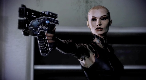 Not-so-boilerplate tough chick Subject Zero is always angry. We’re not exactly sure why this Mass Effect 2 vixen has a chip on her shoulder, but it might have something to do with those tats. They smell like regret, the kind one develops after a long night in Cancun with a drunken artist who owns a staph-infected ink shop.