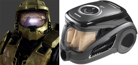 Polish gaming blog Polygamia links us to this canister cleaner that looks a lot like Chief’s helmet. If your love of Halo knows no bounds, you’ll be glad to know that a bit of Matlocking on the UK Samsung Web page tells us that the model number is SC9540. That’s right, Master Chief can help you clean your floor.