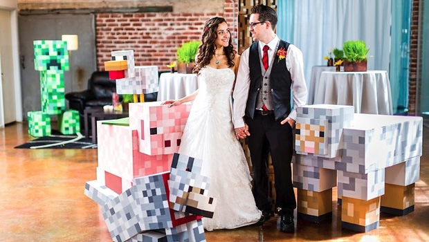 At last year’s MineCon, Minecraft creator Notch helped this dude Matt propose to his girlfriend Asia. Fast forward to April, the couple tied the knot in a room decorated to look like Minecraft‘s digital realm.