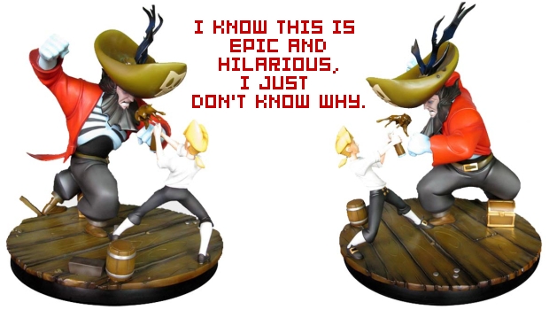 This weekend I come to you on my knees begging for forgiveness. Why do I do this? Because I have never played a Monkey Island game. Not even part of one. Not even one mouse click to make a character walk across the screen. I’m sorry. Strike me down now, wallowing in my own self pity. My only defense is that I have played every other LucasArts point-and-click masterpiece, but that is no defense at all. I can’t even fully appreciate the statue of LeChuck and Threepwood throwing down that you see above, and it so deserves to be fully appreciated.