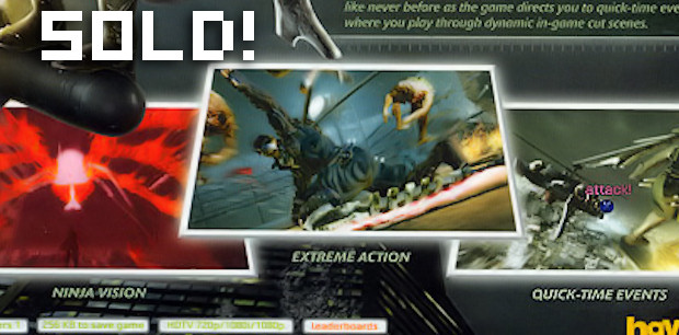 I’ve been poking fun at Ninja Blade‘s reliance on quick time events for quite a while now, but it seems the joke has come to a head with the game advertising QTEs as a unique selling point on the box. The game, which released this week, seems to think that people will buy it based on the fact that the much-maligned gameplay crutch is heavily featured. Really?